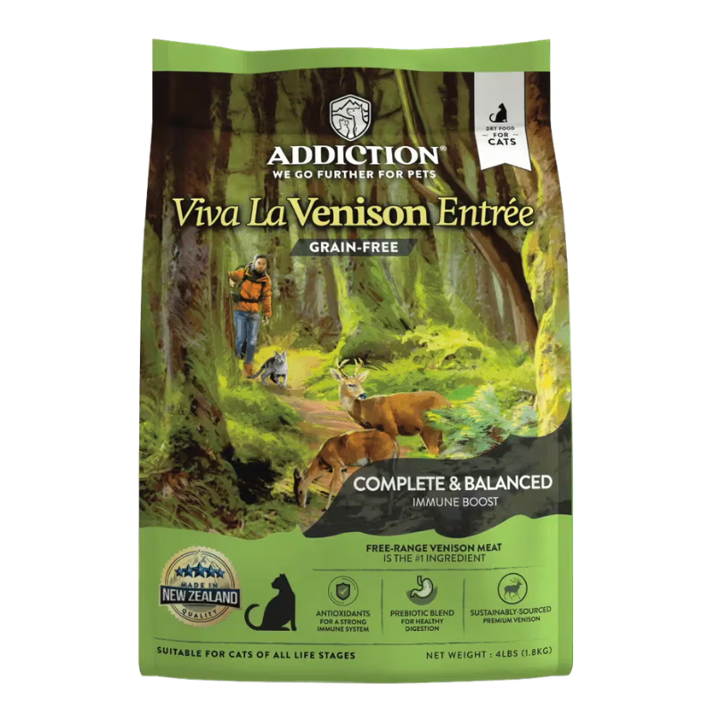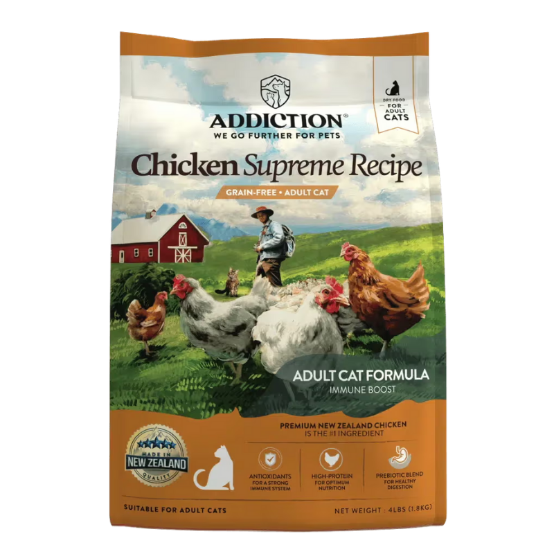 Addiction Pet Food goes further for your pets by literally going to the ends of the earth – New Zealand. One of the cleanest countries in the world to source the purest and freshest ingredients, New Zealand gives us a nutritional edge over other pet foods. Our ingredients are ethically sourced and manufactured under the strictest standards at our technologically advanced plant located in the Bay of Plenty. Our pet food is free from added artificial colors, flavors, and preservatives, giving your cats the optimal nutrition they need.